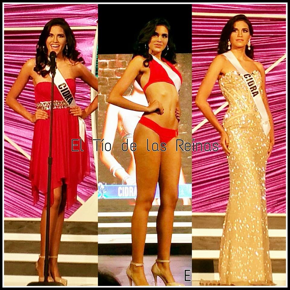 Esta joven es una verdadera belleza criolla, con unos ojos obscuros y una sonrisa que enamora. En su preliminar irradió simpatía y su personalidad trasciende el escenario.En su vestido hermosa y su escultural figura esta muy bien trabajada. Confió en que con el jurado le haya ido bien pues en la competencia de mejor respuesta no me convenció del todo. Aún así me encanta y merece llegar.